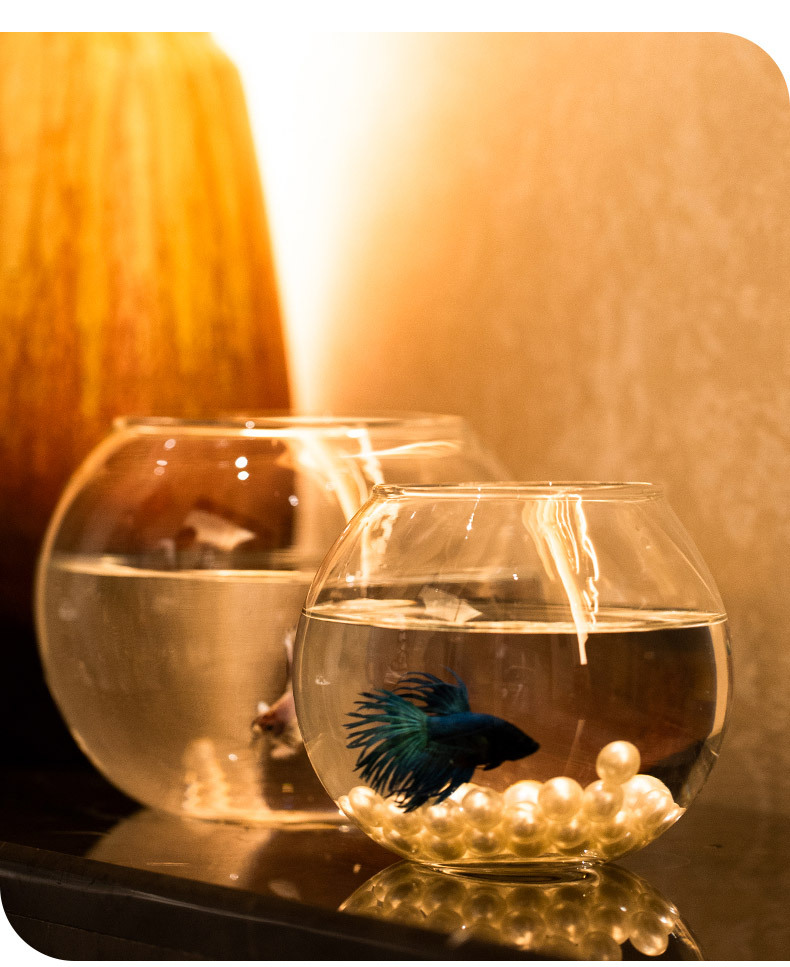 Tangki ikan kaca transparan bulat ruang tamu rumah tangga kecil ikan mas Douyu penyu jar seni mini kantor desktop