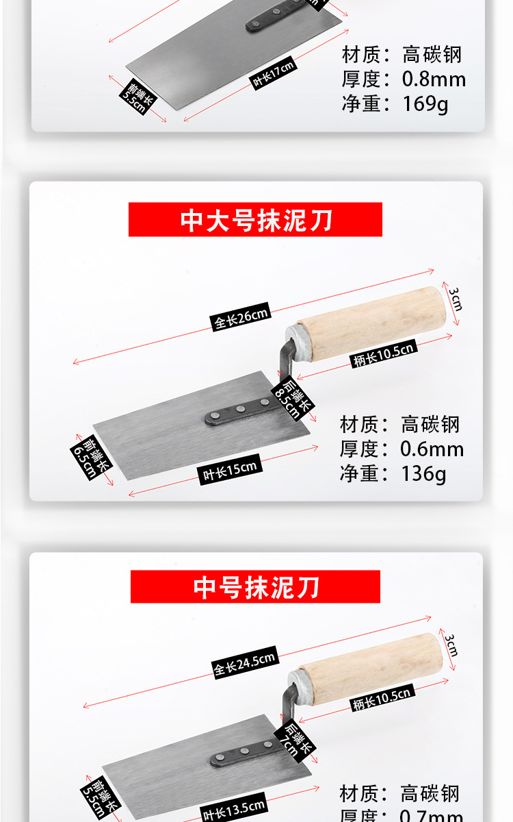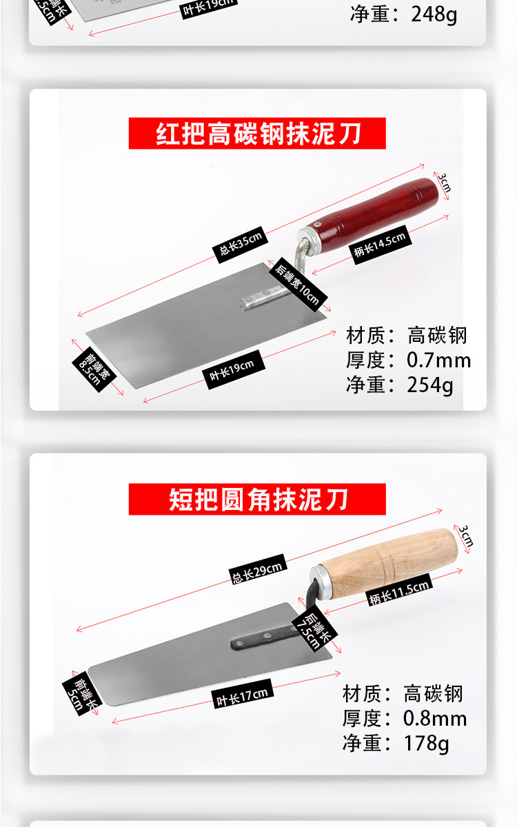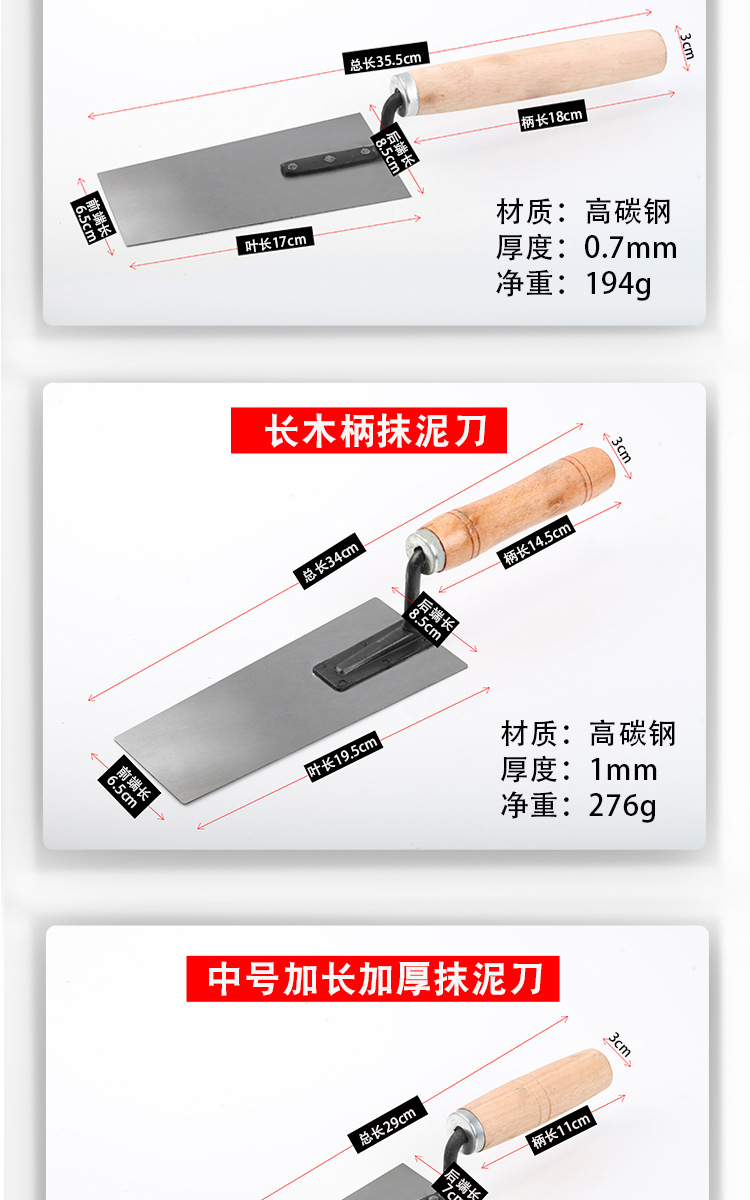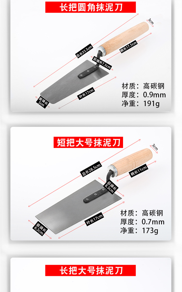 Sekop, spatula plester, spatula tukang bata, pengikis dempul, spatula ubin, spatula kecil dari produsen.
