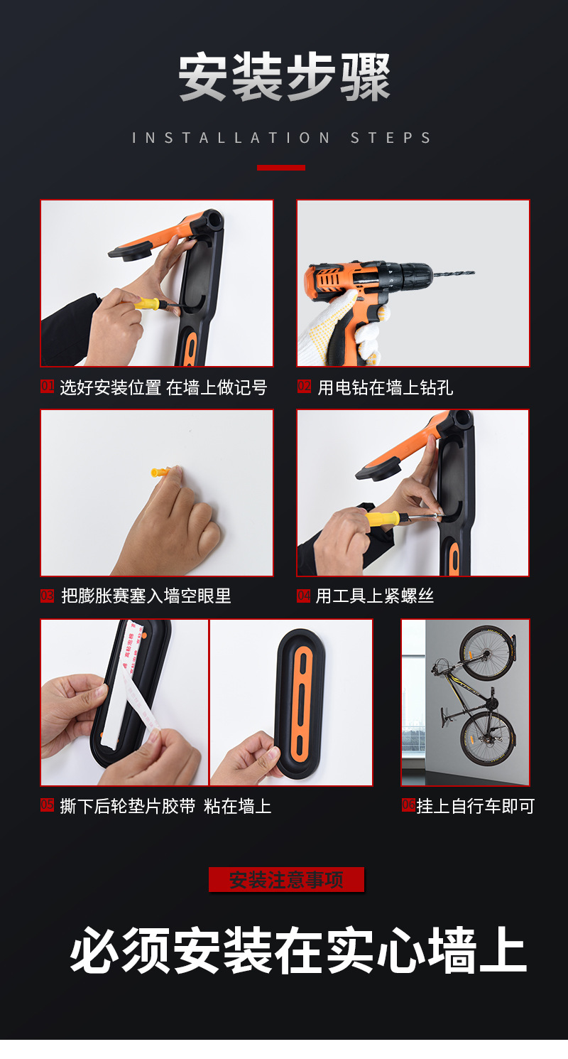 Rak dinding sepeda, gantungan sepeda gunung, pengait dinding dalam ruangan, gantungan parkir sepeda tetap, untuk penggunaan di rumah