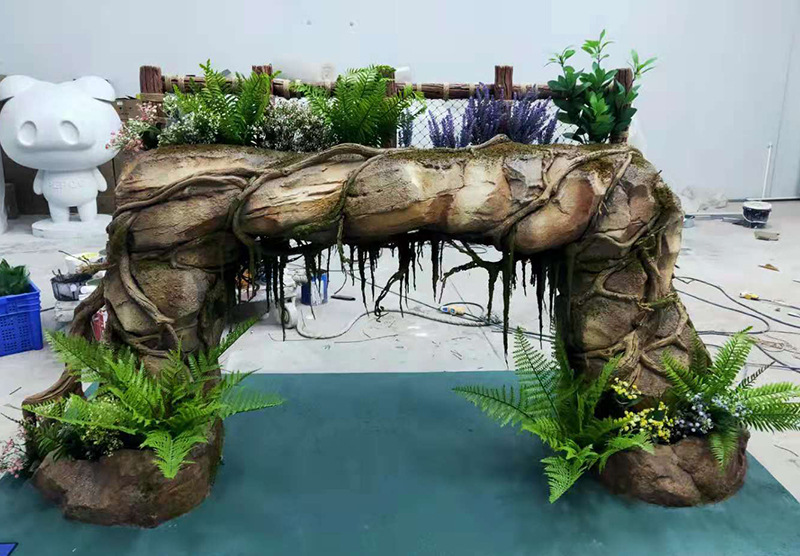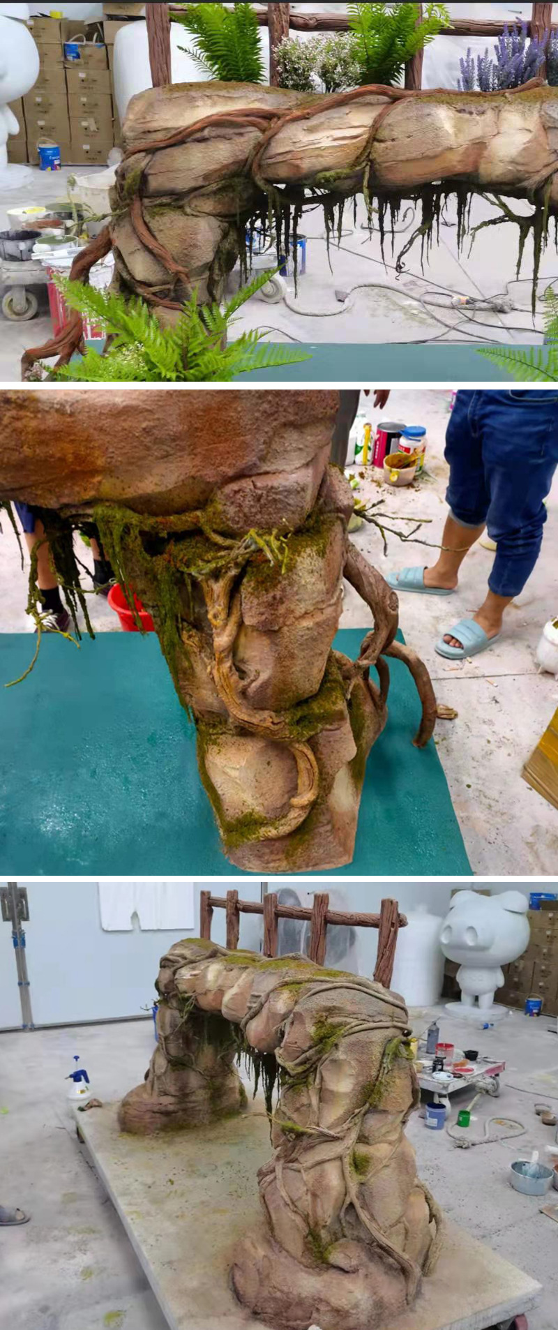 Semen buatan pabrik simulasi bebatuan pohon kuno dekorasi taman lanskap patung GRC semen lurus plastik lanskap batu