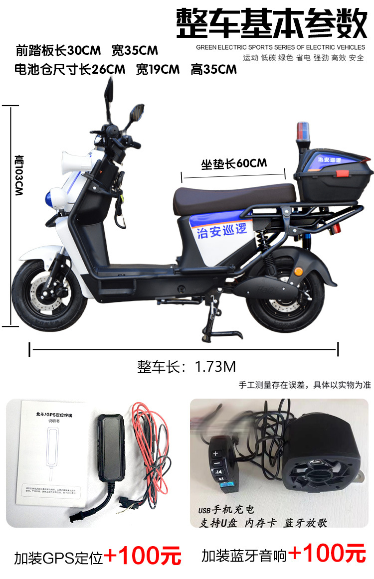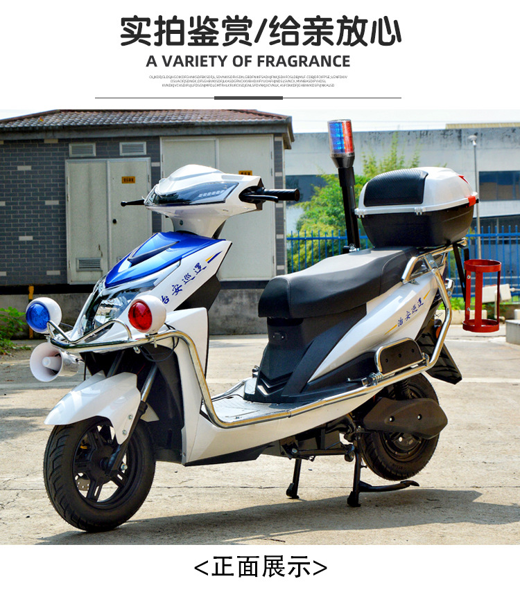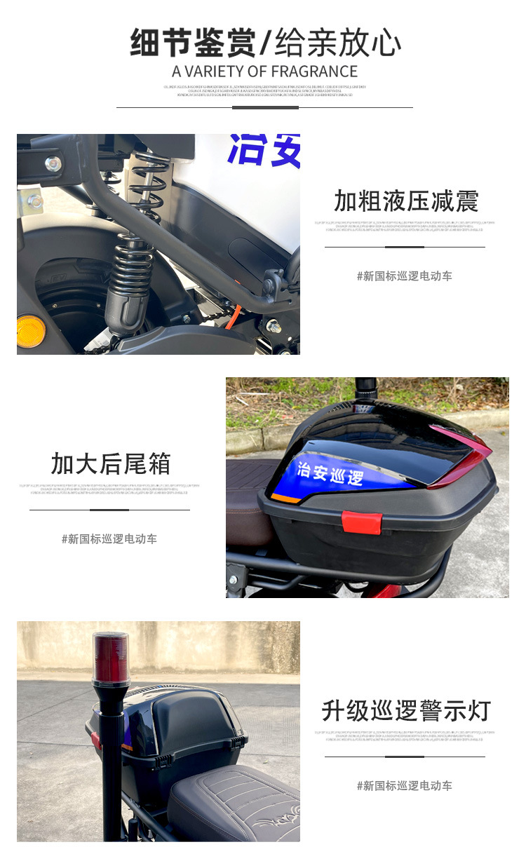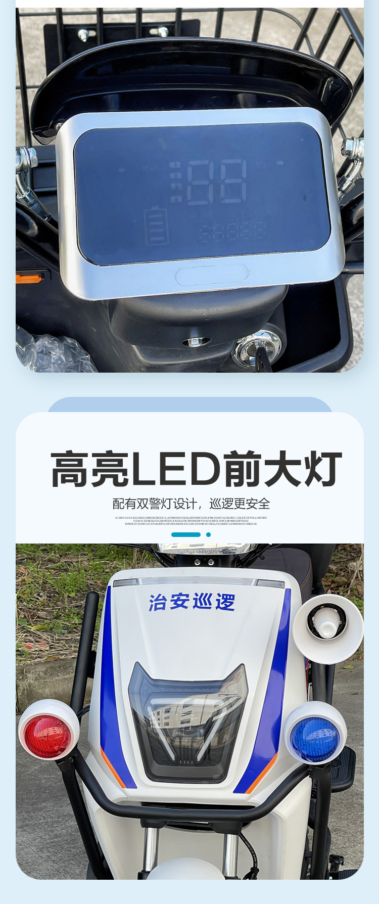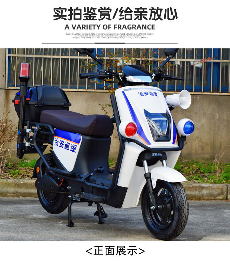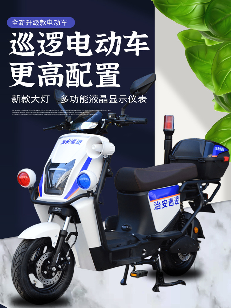 Sepeda motor patroli listrik baru, kendaraan patroli listrik, manajemen kota, keamanan komunitas, keamanan kampus, truk pemadam kebakaran