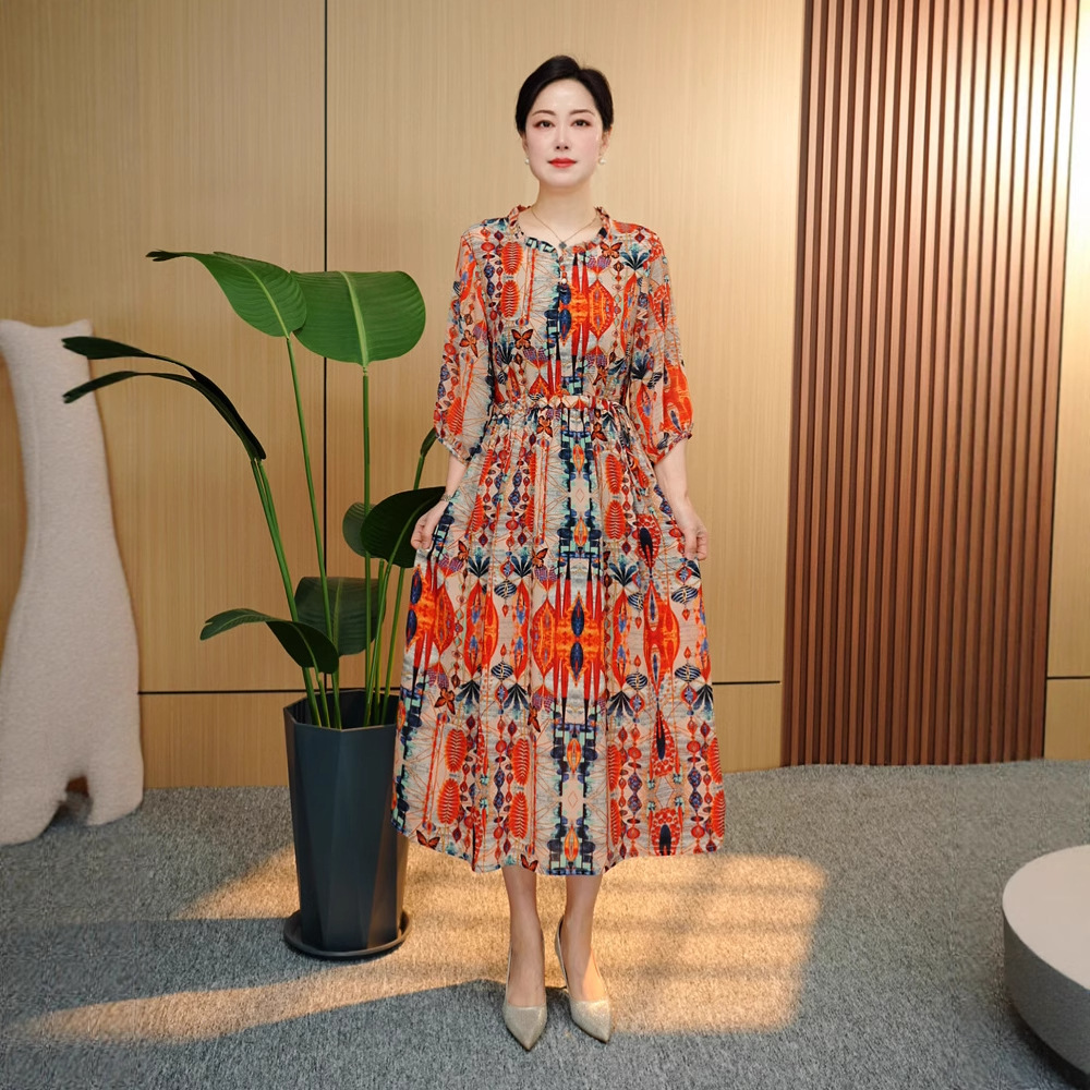 2025 Rok Pantai Liburan Pantai Menutupi Perut Gaun Ibu Gaya Barat Kasual Mudah Dipadu Padan Modis Model Baru