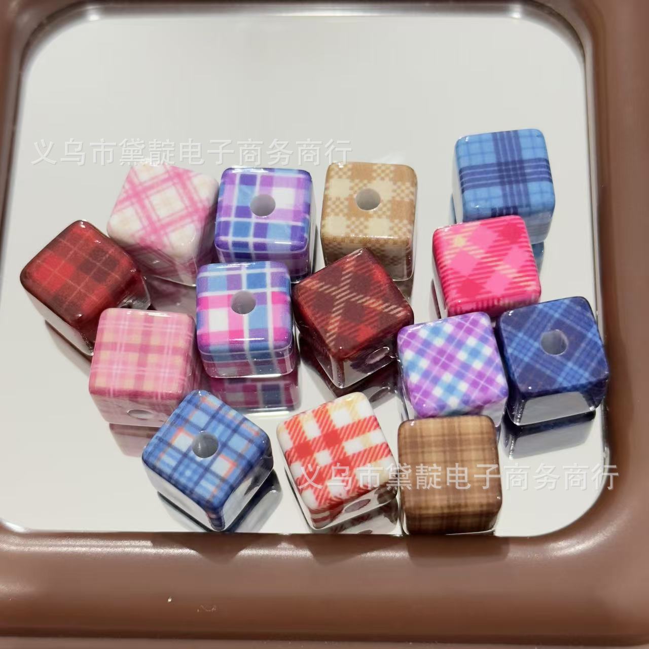 Aksesoris Perhiasan Swakarya Seri Kotak-Kotak Manik-Manik Perhiasan Anak-anak Rantai Ponsel Tas Pakaian String Pena Manik-Manik