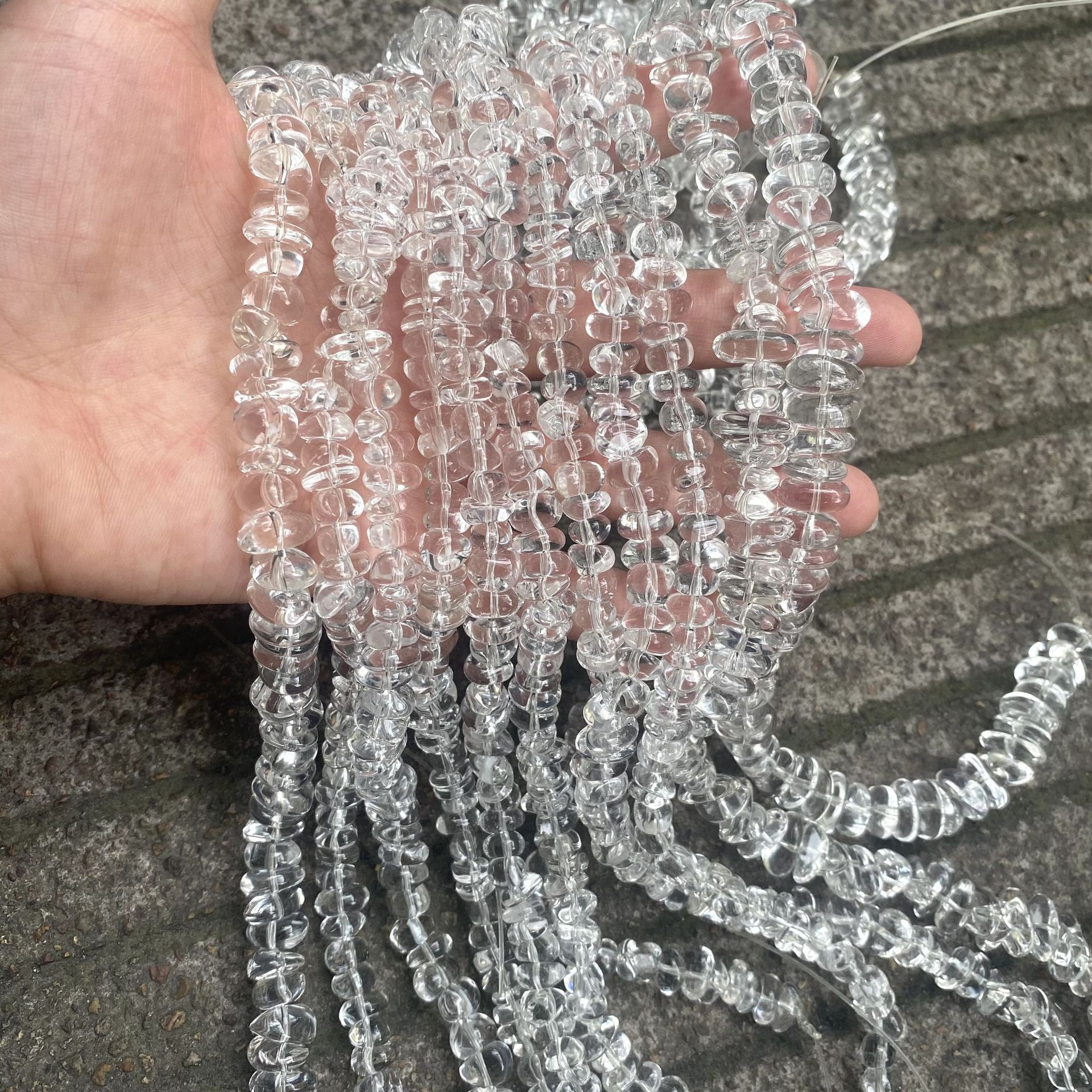 Kristal putih Brasil alami dengan bentuk bulat lubang tengah jaring penuh manik-manik longgar Tingkat A Aksesori Perhiasan diy kalung gelang grosir