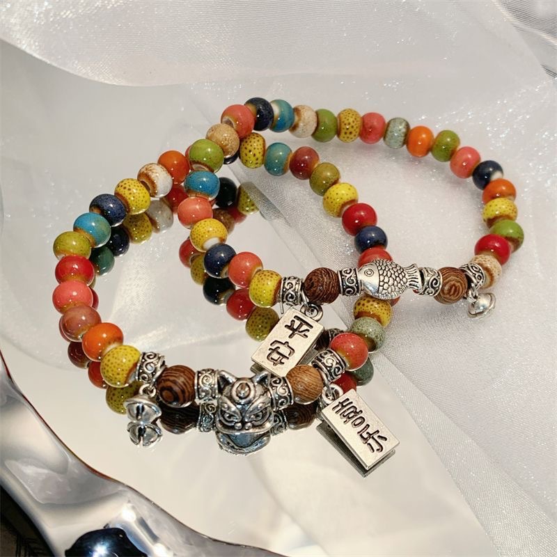 祥锦鲤玻璃手链女国潮中式情侣手饰串珠配饰民族手串