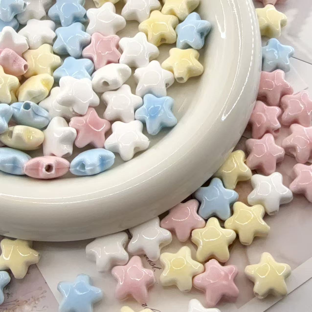 Manik-manik longgar buatan tangan diy chubby warna-warni bintang lima titik manik-manik bawah dilukis tangan multi Warna manik-manik liontin rantai ponsel lucu ins