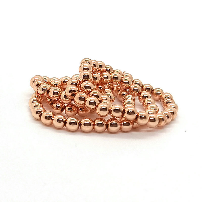 2/3/4/6/8/10mm manik-manik bulat batu empedu hitam berlapis air emas mawar DIY aksesoris perhiasan hematit manik-manik longgar grosir