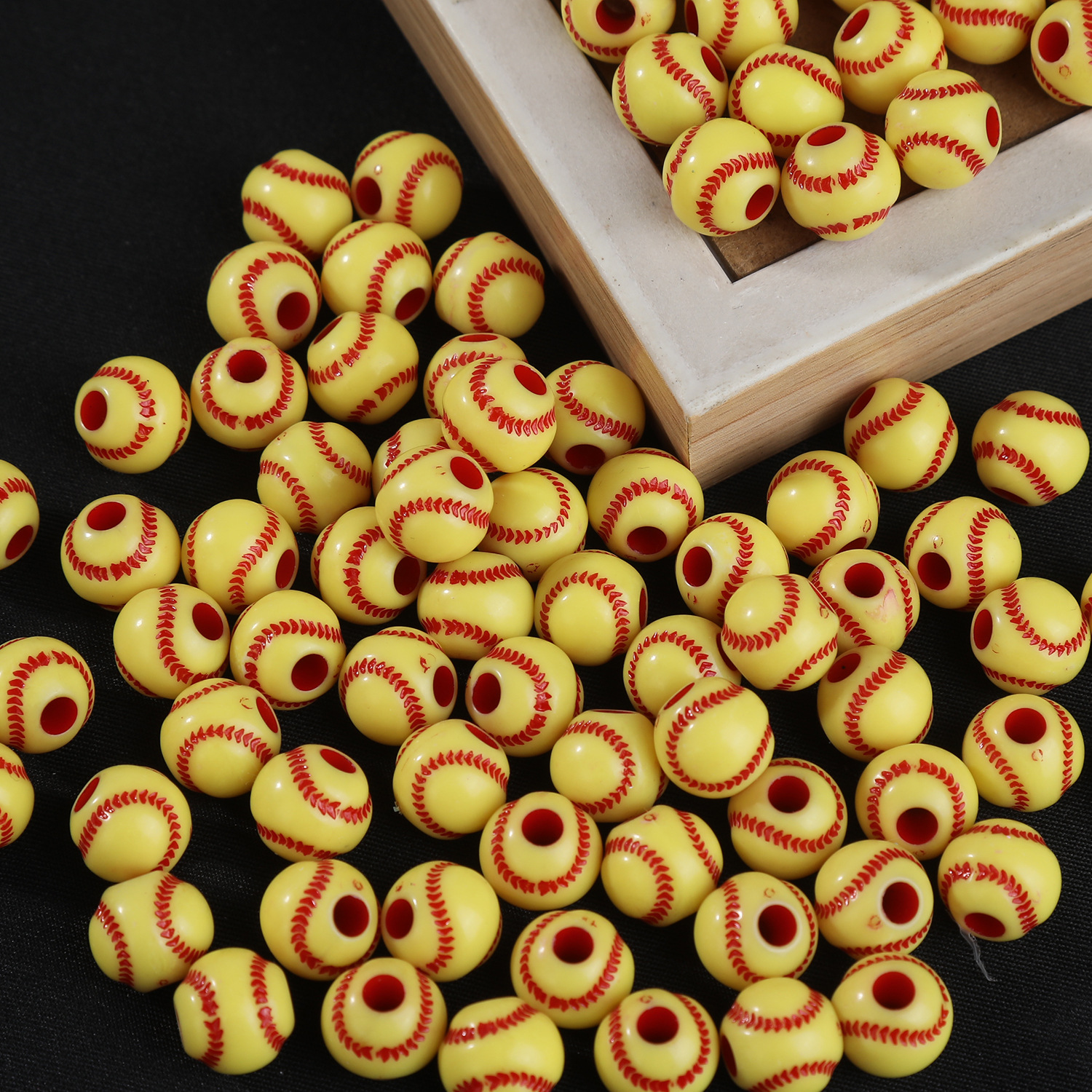 50 buah/pak 12mm manik-manik akrilik tenis bisbol aksesori gelang manik-manik diy manik-manik longgar lubang besar bulat
