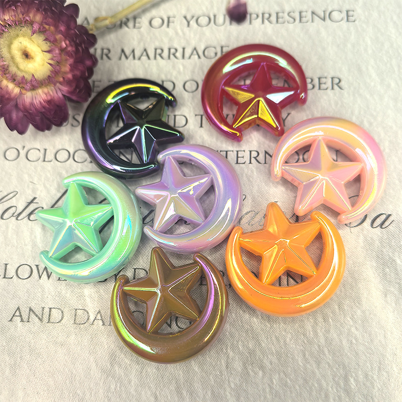 Aksesori Manik-manik Vertikal Bintang Bulan Berlapis UV Gantungan Kunci Bahan Manik-manik DIY Buatan Tangan