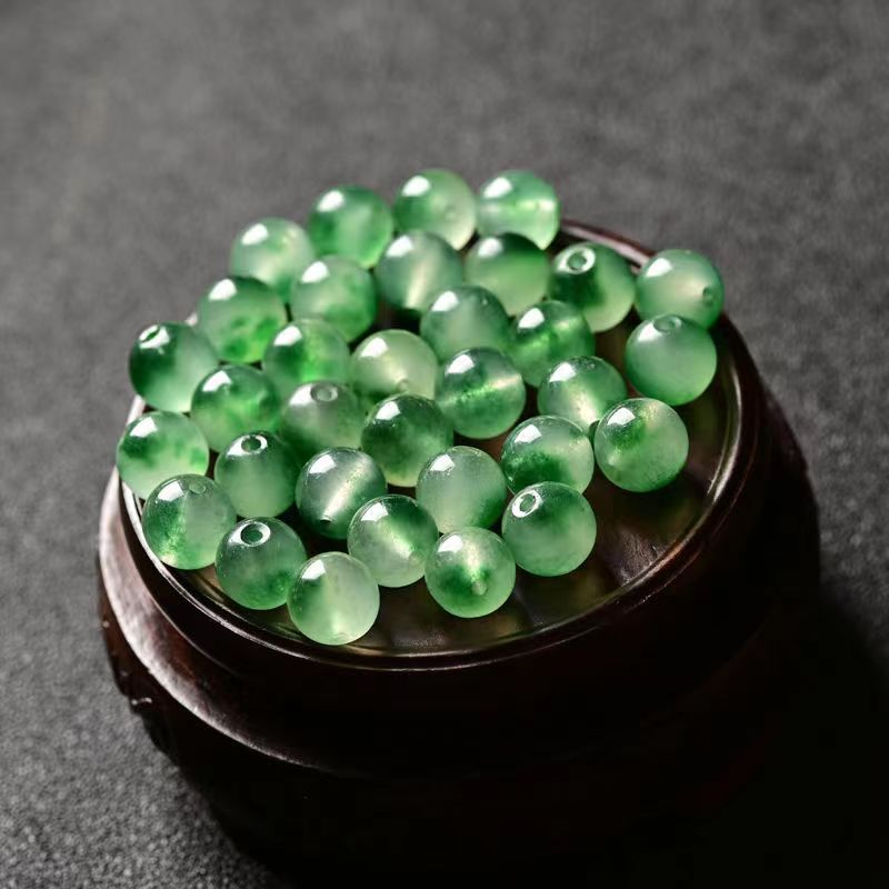 Ice Green bahan aksesori gelang buatan tangan, manik-manik bulat giok quartz longgar bunga kalsedon mengambang hijau
