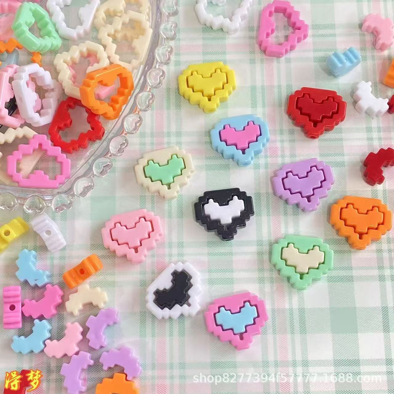 Aksesori Pensil Manik Bahan Manik Manik Rantai Ponsel Bingkai Piksel Hati Akrilik