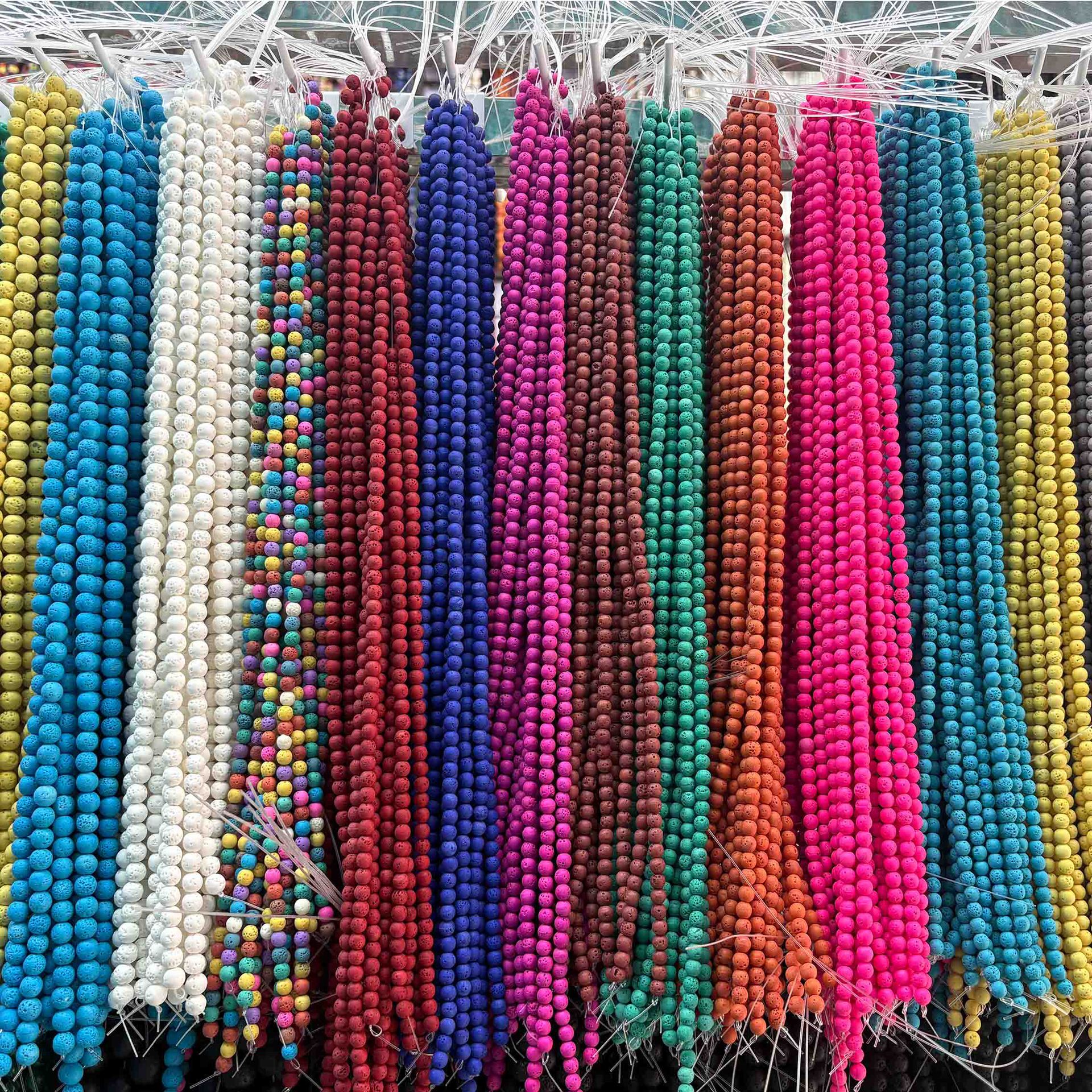 Pabrik Penjualan Langsung Manik-manik Bulat Batu Vulkanik Alami Manik-manik Batu Meleleh Berwarna Manik-manik Perhiasan DIY Aksesoris Grosir