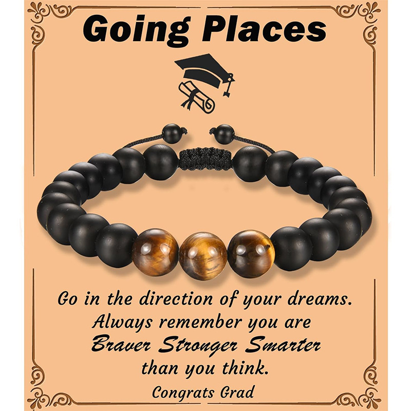 Gelang Hadiah Ulang Tahun Model Border Lintas Batas Musim Kelulusan Siswa Perhiasan Hadiah Batu Mata Harimau Batu Matte Manik-manik Tangan Pria