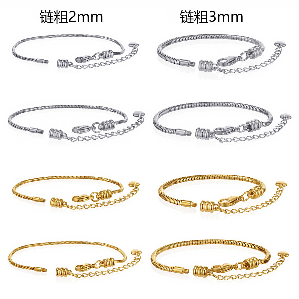 Panjia gelang perhiasan buatan tangan kasual, rantai tali tulang ular logam stainless steel tahan air tidak pudar