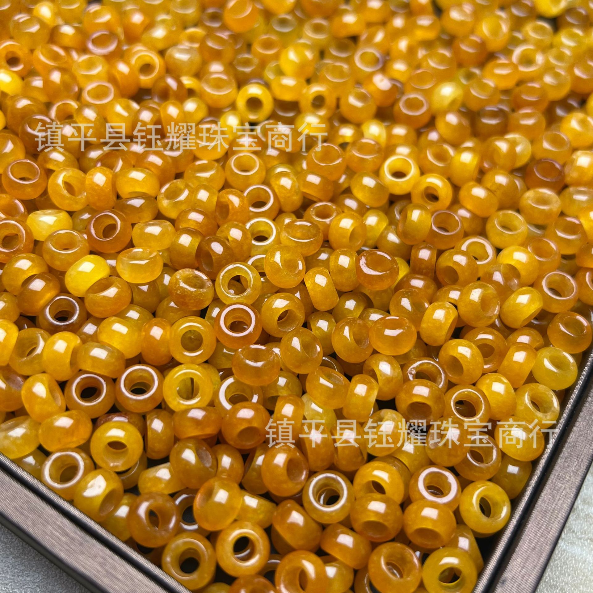 Giok Bashan zamrud lubang besar Abacus Jade manik-manik longgar sutra kuning 8 × 4mm cincin roti aksesori kalung gelang giok diy