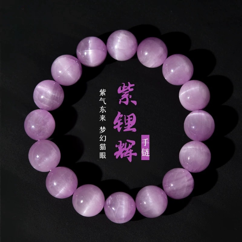 Manik-manik Kristal Litium Ungu Alami Manik-manik Terpencar Es Mata Kucing Manik-manik Ungu Lavender Gelang Duobao DIY dengan Perhiasan
