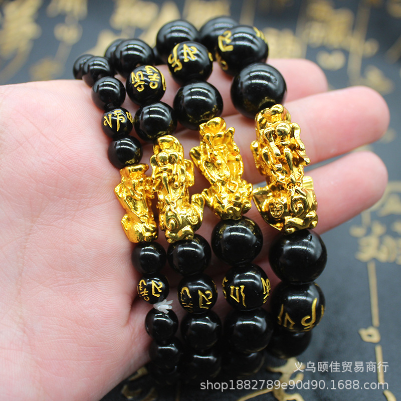 Gelang Pixiu enam kata peribahasa Pixiu, gelang Pichu tali tangan Buddha manik tepi ornamen tangan warna hitam berani generasi a