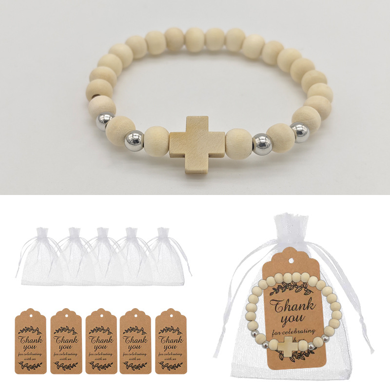 Liontin Gelang Tangan Manik-manik Kayu Alami Cross Model Baru Gaya Bohemia Eropa dan Amerika Liontin Gelang Manik-manik Retro