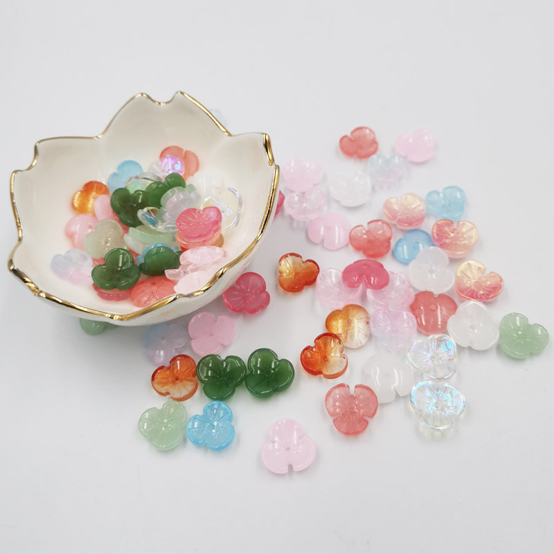 Pasokan langsung pabrik grosir kaca Ceko 11MM manik-manik kaca bunga tiga kelopak DIY Aksesori manik-manik manik-manik bahan perhiasan manik-manik longgar