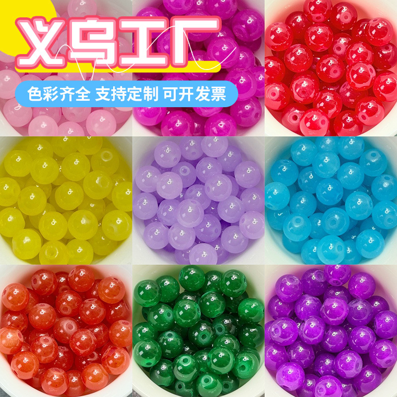 Manik-manik imitasi giok, manik-manik kristal berwarna, gelang imitasi kalsedon, manik-manik kaca bercat, aksesoris DIY, grosir manik-manik