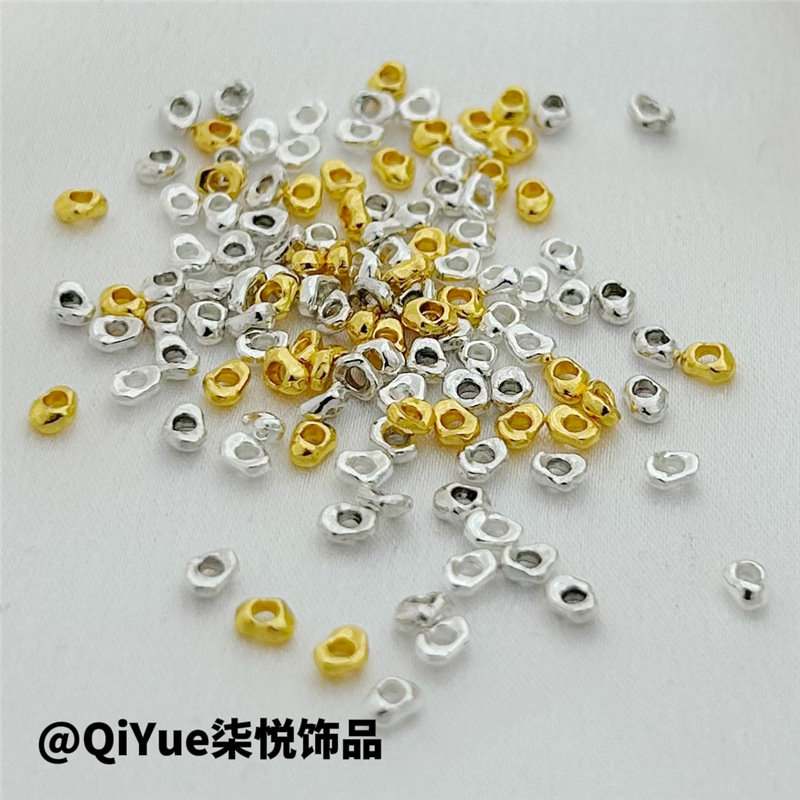 3.5mm Alloy Pelapisan Kecil Perak Pecah Perekat Tali Tangan Kalung Aksesori Perhiasan Tidak Beraturan Manik-manik Perekat Datar Manik-manik
