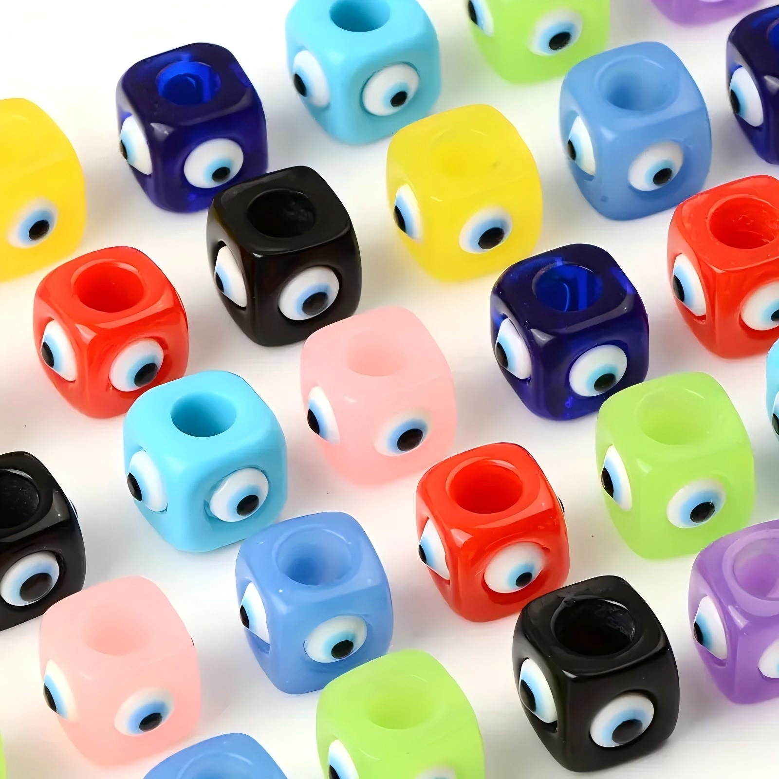 Resin Lubang Besar Mata Setan Warna-Warni Mutiara Persegi Aksesoris Perhiasan Mata Biru Turki Rantai Ponsel Manik-manik Bahan DIY