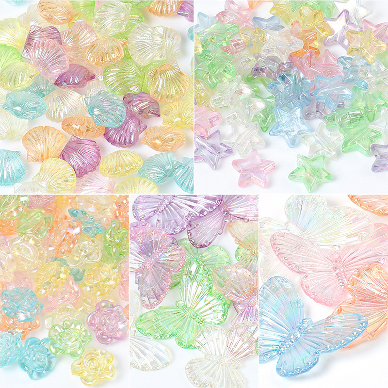 Manik-manik akrilik warna AB transparan manik-manik longgar kerang Aksesori Perhiasan DIY warna ajaib spacer manik bahan gelang
