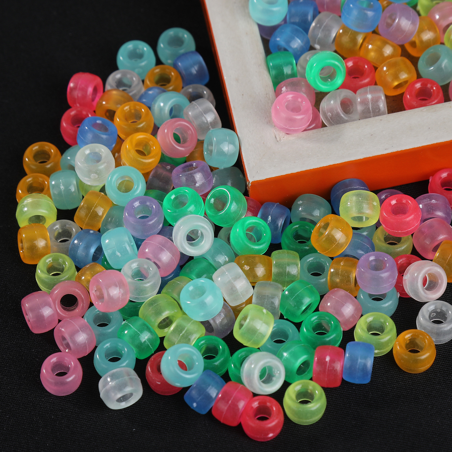 100 buah/pak manik-manik bercahaya lubang besar manik-manik kuda poni manik-manik barel warna neon DIY rantai ponsel aksesori perhiasan manik-manik longgar
