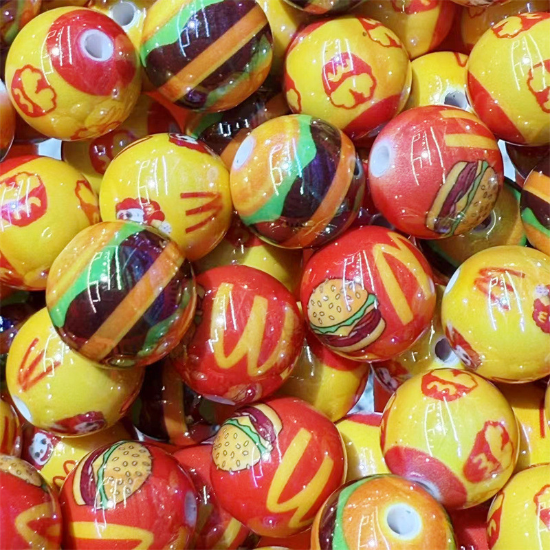 Aksesoris Rantai Ponsel Perhiasan Manik-manik Buatan Tangan DIY Manik-manik Bulat McDonald's Bersablon Pernis Lubang Lurus 16mm