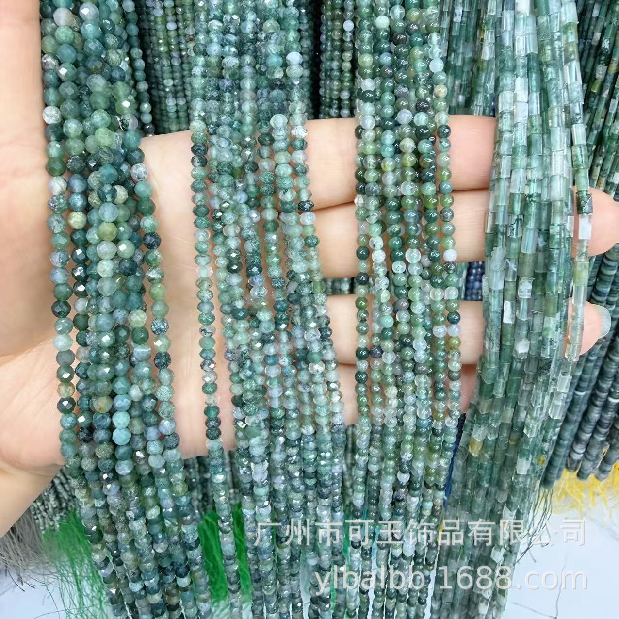 Pabrik grosir batu akik akuatik alami potongan bulat manik-manik longgar sudut potongan manik-manik bulat diukir rantai panjang aksesori perhiasan DIY