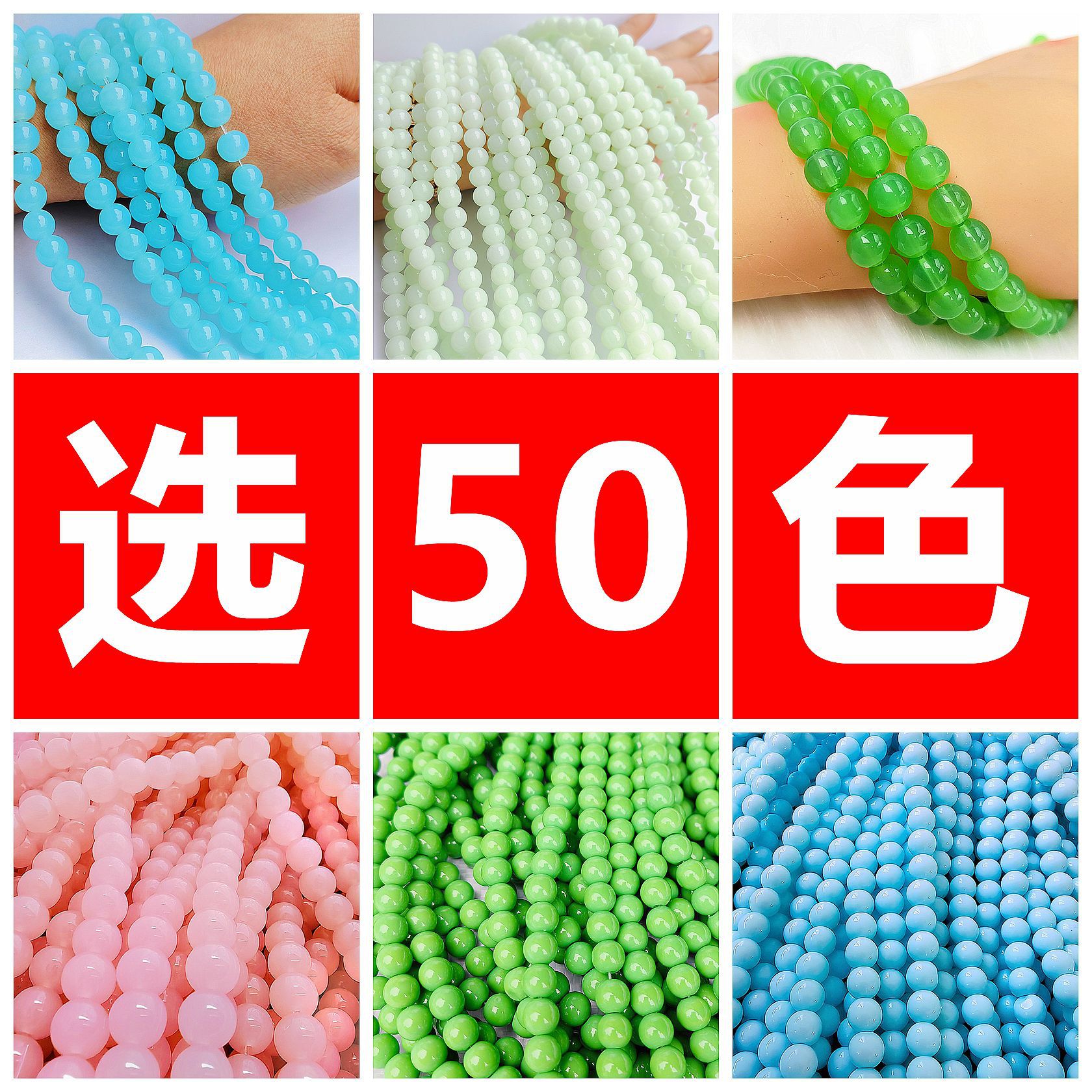 Grosir bahan gelang manik-manik 4mm 10mm manik-manik kaca manik-manik longgar aksesoris diy 50 warna dalam persediaan manik-manik bulat
