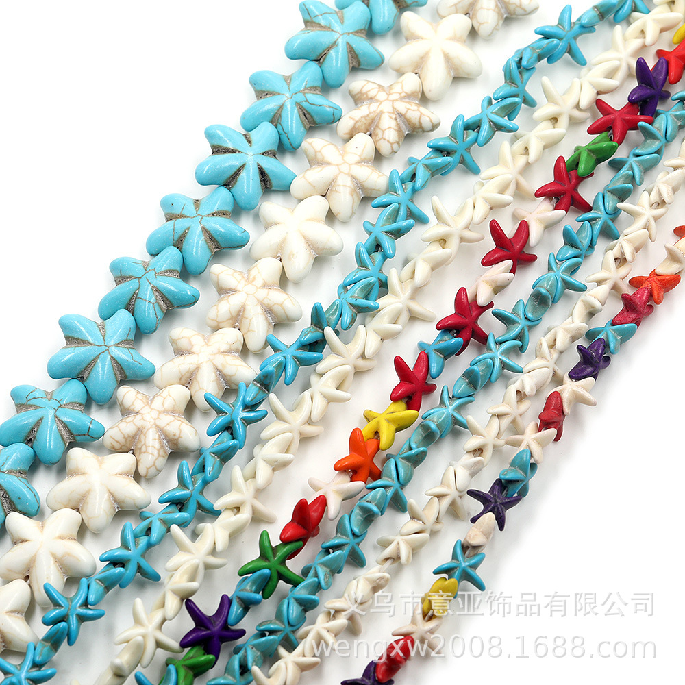 Aksesoris perhiasan DIY manik-manik longgar berbentuk bintang laut pirus manik-manik bohemian sintetis retak putih pirus bunga pinus