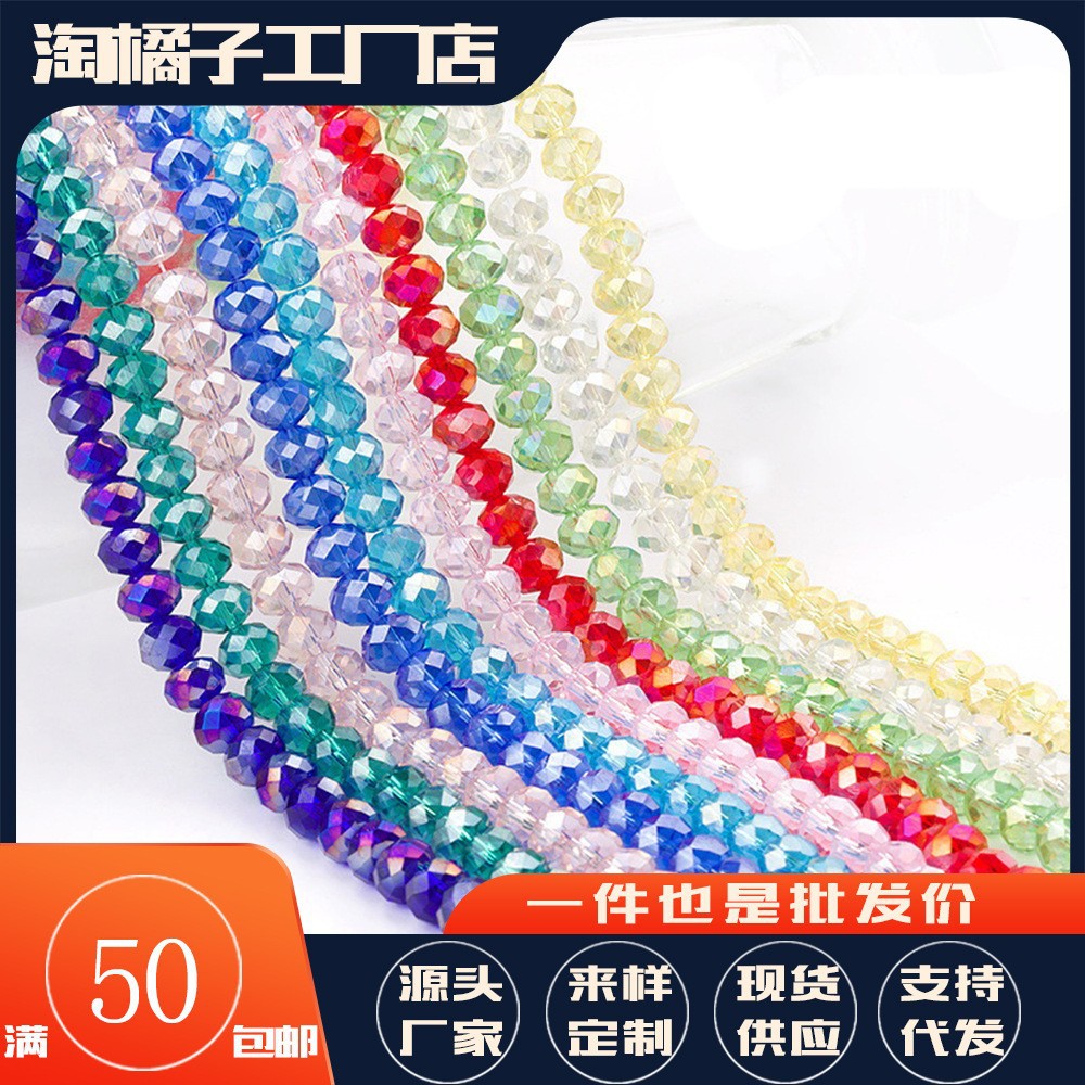 Grosir 6*8mm Aksesori gelang manik-manik kaca giok imitasi manik-manik silinder kaca kristal Aksesori manik-manik longgar