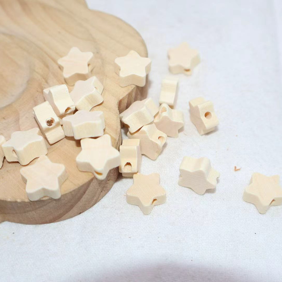 Shouyuan Kayu Alami Bintang Pentagram 12mm Lurus Bahan Manik-Manik Kayu Asli Warna DIY Bahan Aksesori Tas Kotak Grosir