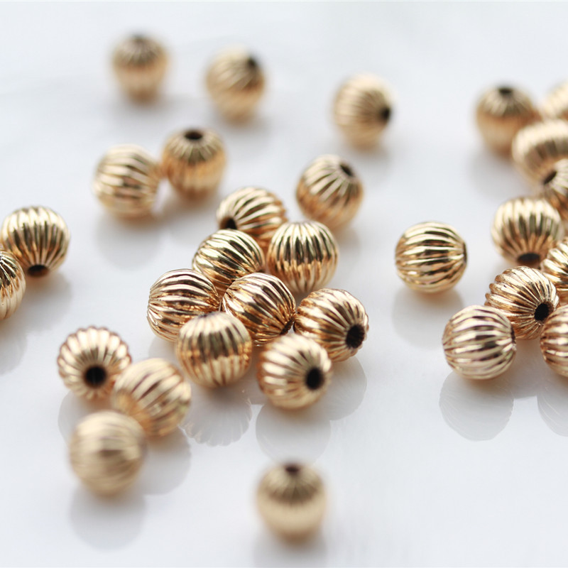 Manik-manik semangka berongga potongan emas 14K DIY perhiasan buatan tangan Aksesori pola labu emas lentera warna mempertahankan manik-manik bulat