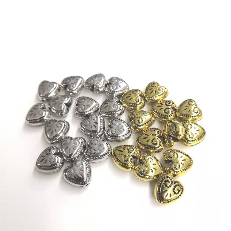 Grosir ccb manik-manik dilapisi pola 12mm, Kalung Gelang manik-manik bentuk hati, aksesori perhiasan retro hati cinta kecil