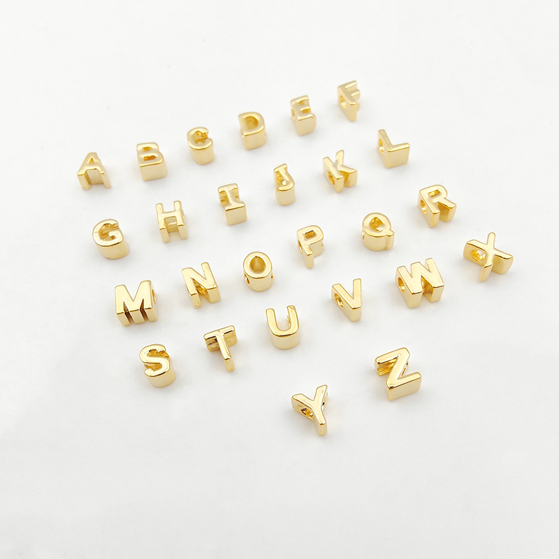 Perlindungan warna emas asli berlapis tembaga 26 huruf Inggris manik spacer mini Aksesori perhiasan gelang diy manik-manik manik-manik longgar