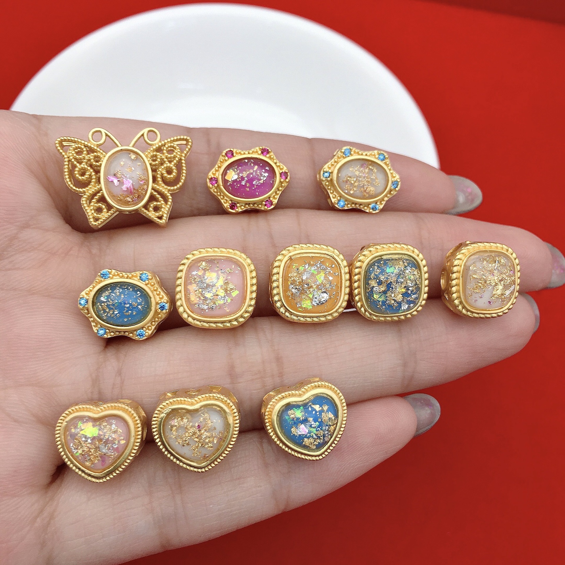 Manik-manik emas metode kuno warna longgar mutiara pasir emas tatahan manik-manik batu emas diy aksesori gelang tali tangan dengan manik-manik