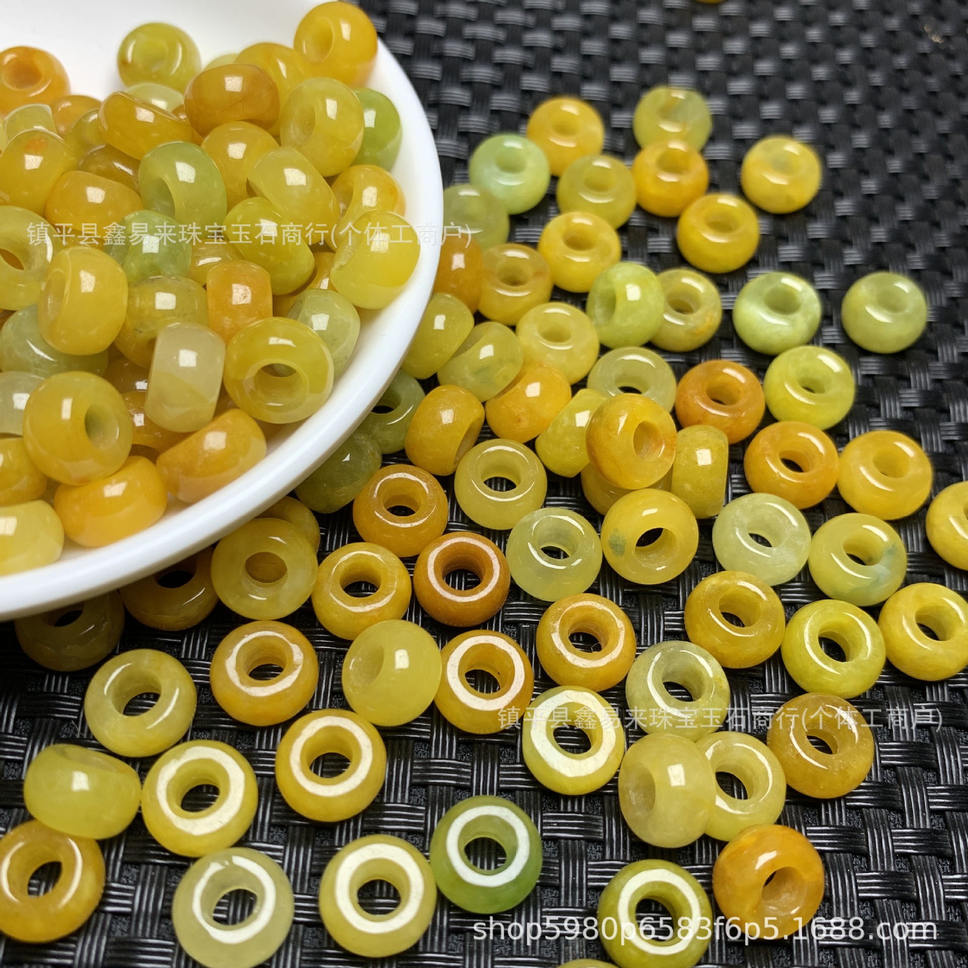 Myanmar Zamrud Kuning Fei 10mm Cincin Roti Pabrik Langsung Penjualan Langsung Manik-manik longgar Grosir Giok DIY Aksesoris Bahan