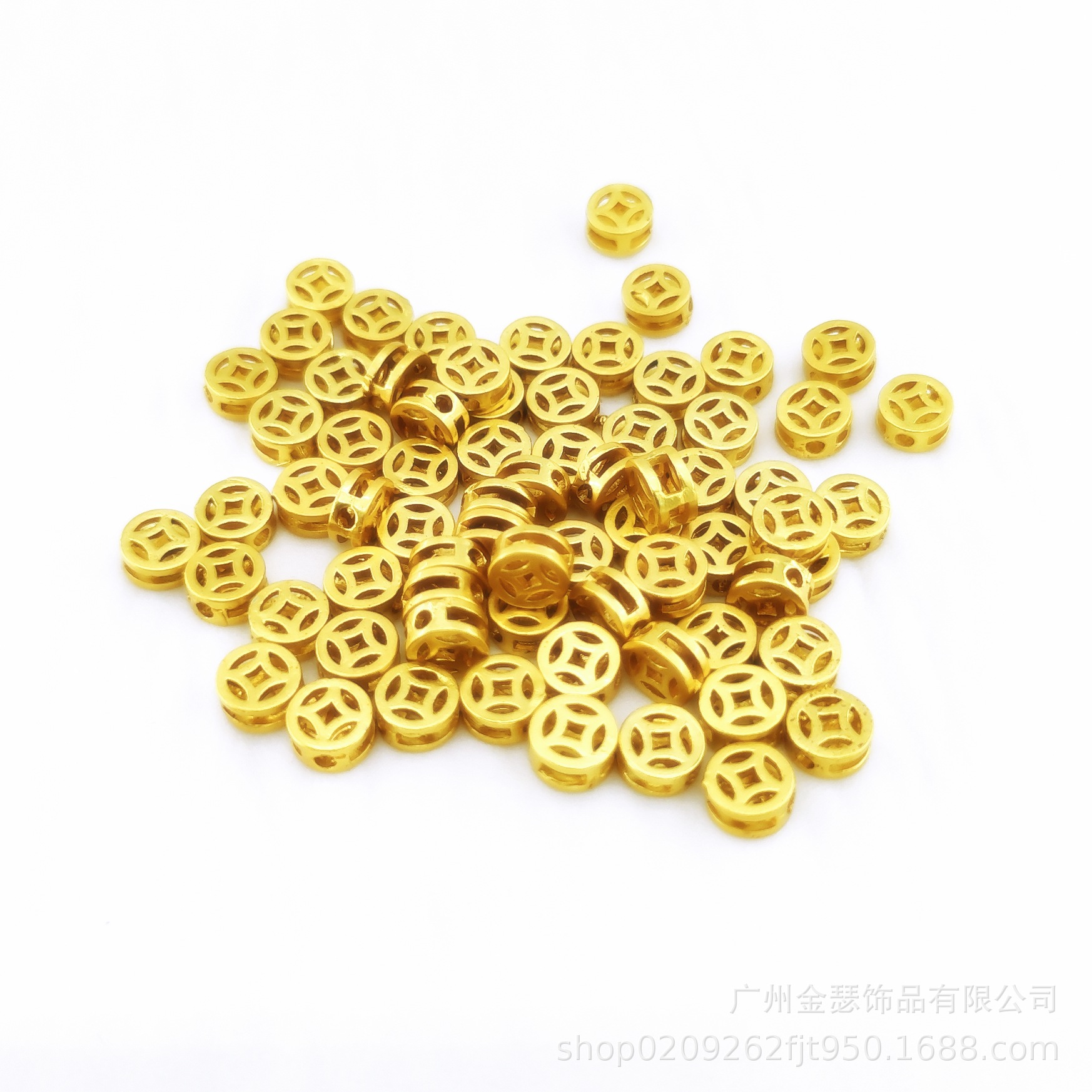 Populer emas kuno berongga tembaga manik-manik koin kuno manik-manik datar koin bulat manik-manik longgar buatan tangan DIY dikepang tali aksesoris bahan