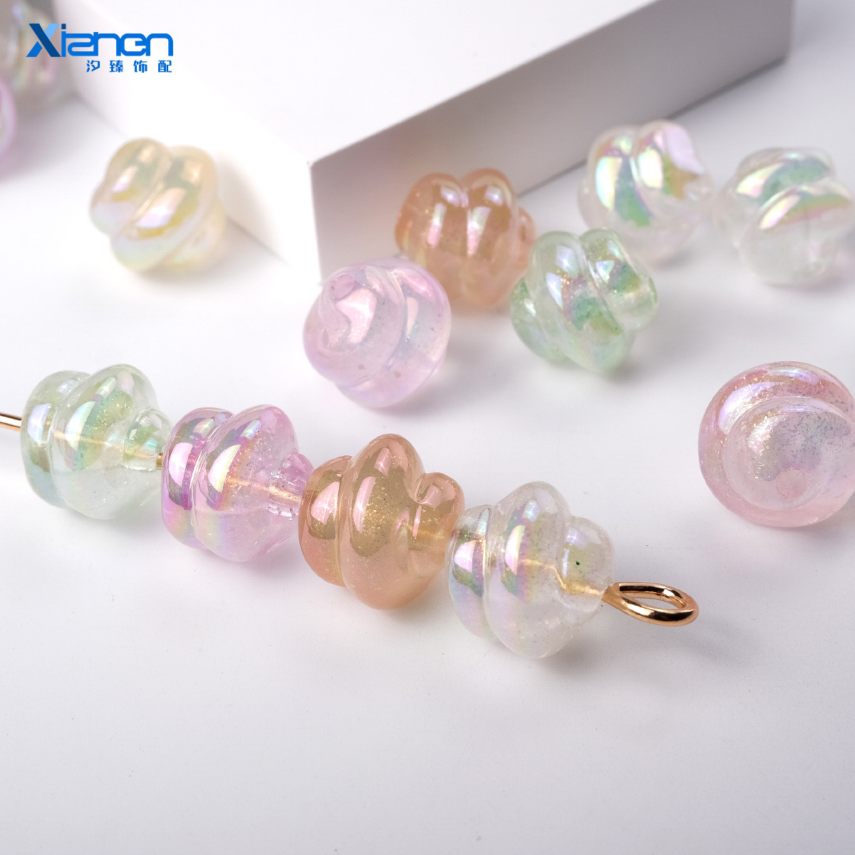 Manik-manik terpilin warna-warni langit berbintang mutiara bubuk emas manik-manik UV berlapis warna manik-manik lubang lurus longgar manik gelang akrilik bahan diy