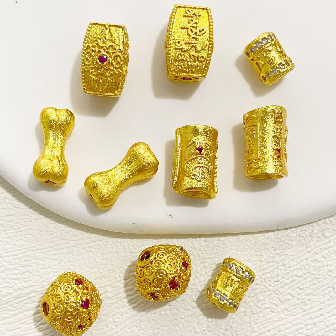 Manik-manik Enam Karakter Mantra Pola Korundum Terhias dengan Pasir Emas
