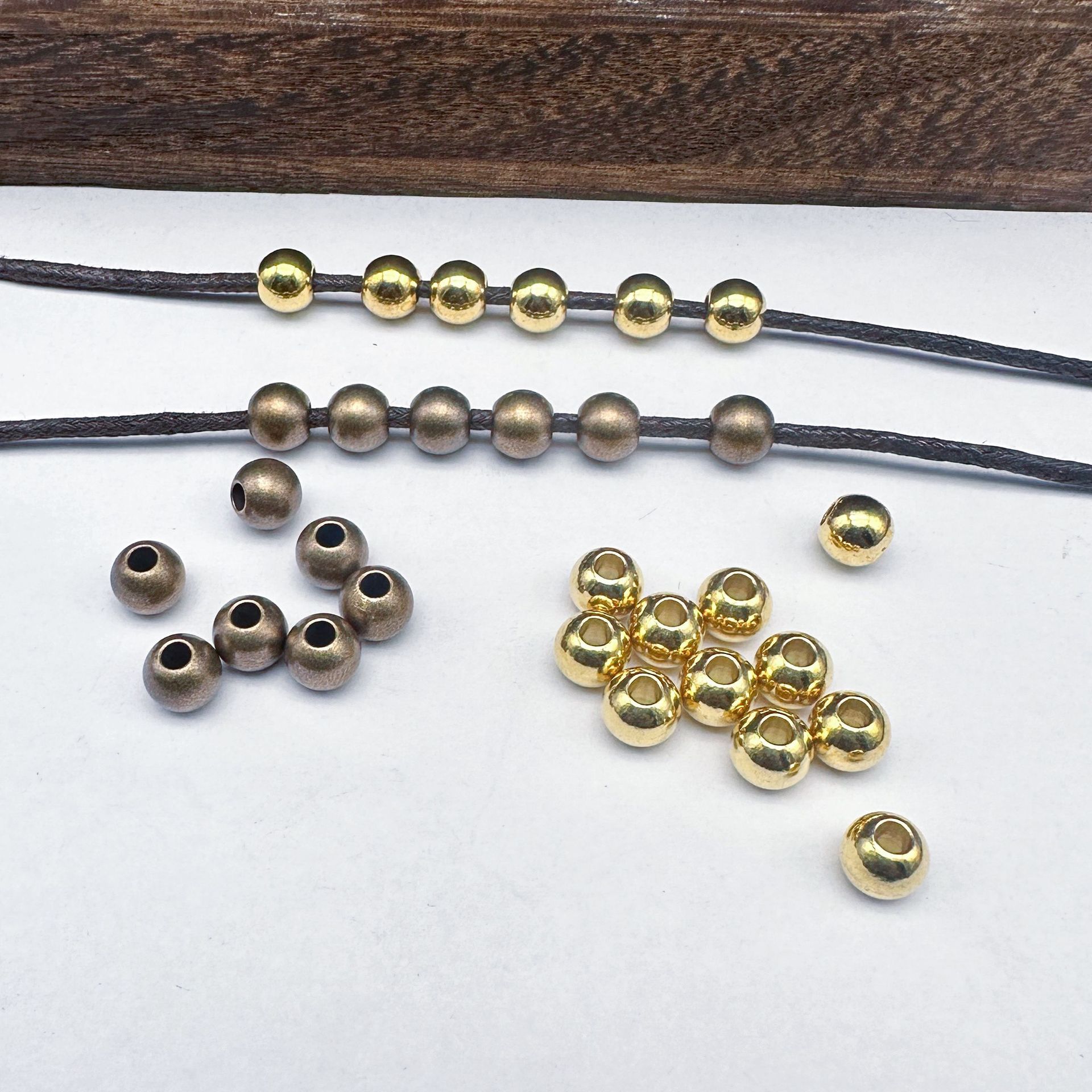 Aksesoris perhiasan gelang kuningan manik-manik bulat tembaga murni Aksesori Perhiasan DIY manik-manik pemosisian ujung kalung manik-manik spacer tembaga tekanan