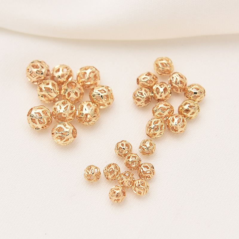 Aksesori Perhiasan DIY buatan tangan manik-manik longgar berongga balutan emas 14K Aksesori Perhiasan bahan berongga manik bulat