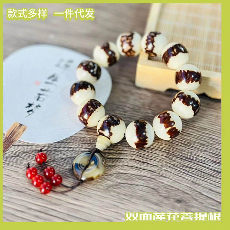 Gelang manik-manik Budha akar Bodhi giok putih gelang Tikus berukir rosario akar Bodhi komoditas kecil Ukir emas ungu