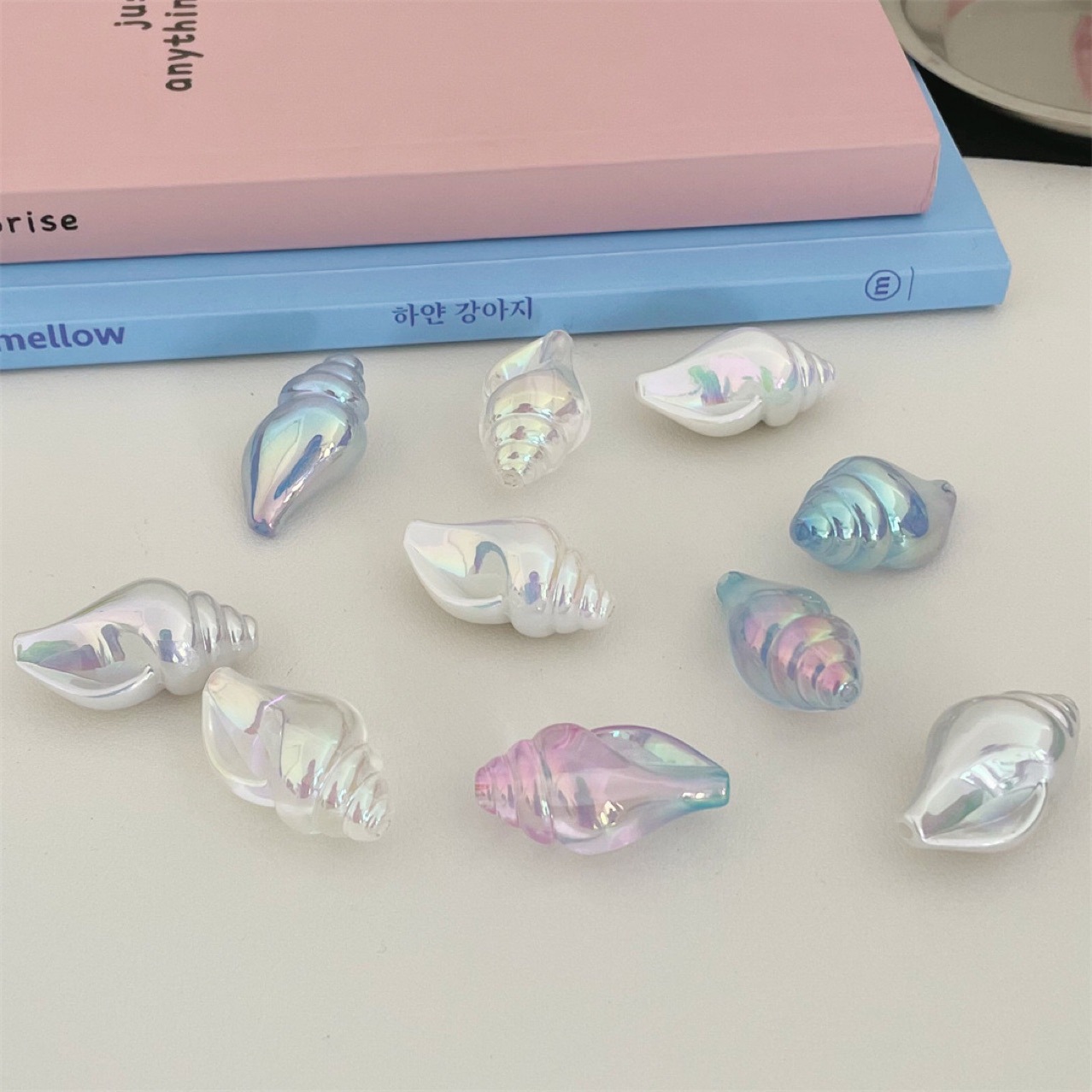 Aksesoris Rantai Ponsel DIY Manik-manik Keong Lubang Langsung Berlapis Warna Ganda UV