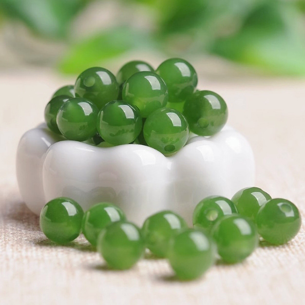 Hotan Jasper Warna Bayam Kalsedon Hijau Gelang Diy Manik-manik Bulat Kalung Aksesori Perhiasan Manik-manik Batu Kuarsa