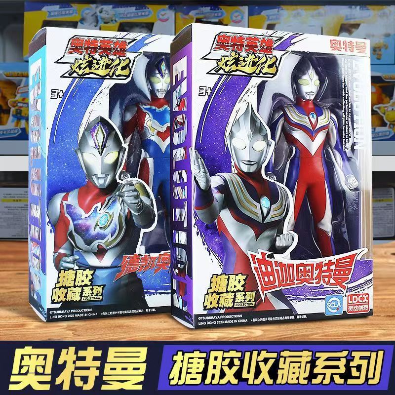 Barang asli smart cool Evolution lem fleksibel Ultraman DiGa de kaiwa Aote hero lem fleksibel boneka buatan tangan
