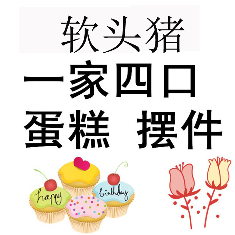 Babi keluarga empat kepala lembut kue ulang tahun Dekorasi persediaan dekorasi rumah bermain mainan