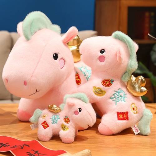 粉韵招财福运马年吉祥物毛绒玩具新年送礼物公仔挂件公司活动礼品